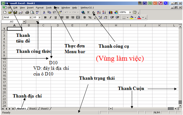 · Thanh điạ chỉ của bảng tính (Sheet).