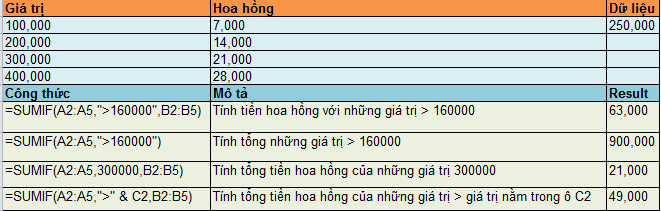 | Ví dụ hàm Sumif |