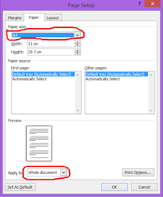 + Chọn Paper, trong Paper size chọn A4, trong Apply to, chọn Whole document.