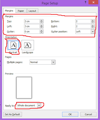 Top: 2 cm, left: 3cm, right: 2 cm, bottom : 2cm