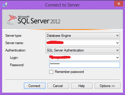 Cửa sổ đăng nhập vào SQL Server:
